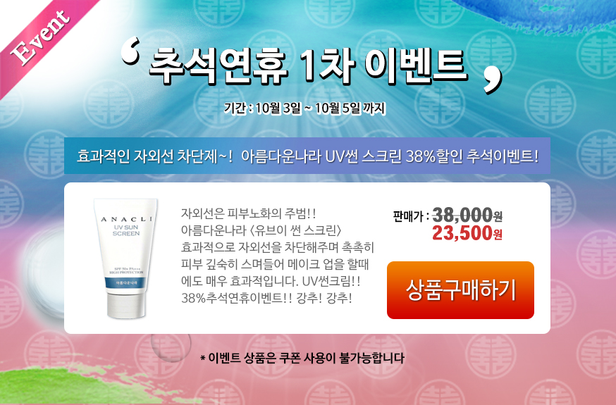 추석연휴 1차 썬크림 38% 할인 이벤트